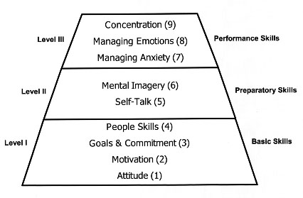 Level I - These mental skills constitute a broad base for attaining long-term goals, learning, and sustaining daily practice. They are needed on a day-by-day basis for long periods of time, often months and years.